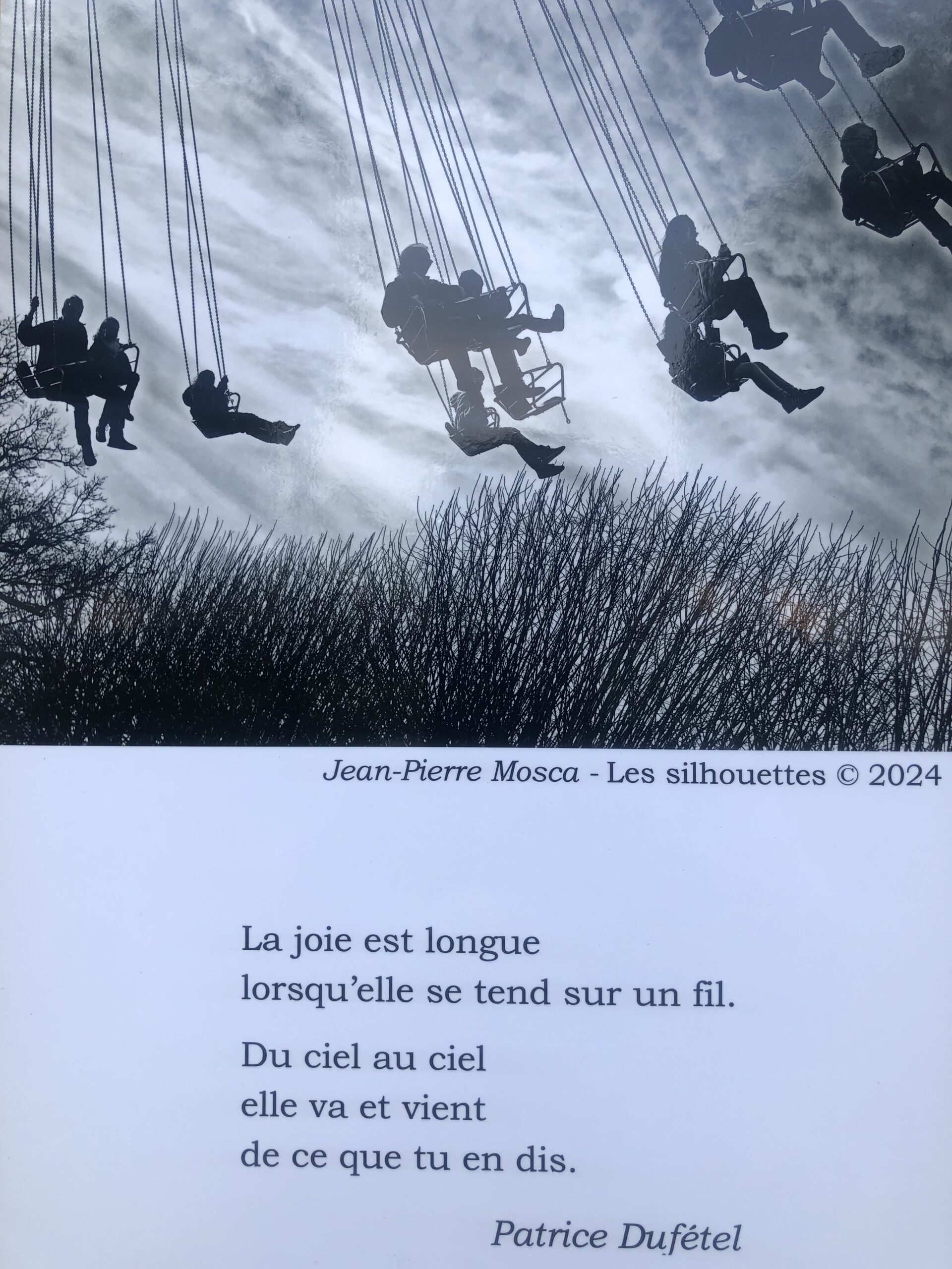 Photos exposées : Pour cette édition 2024 de l’Art en Chemin, j’ai sélectionné divers « Mouvements » captés au loin ou tout près… Sur « mes terres » je photographie la nature, les animaux, ce n’est qu’à l’étranger que j’ose capter l’humain. Je propose les photos sélectionnées aux poètes des Adex et chaque photo est ainsi accompagnée de deux poèmes. Cette année, Anick Baulard, Patricia Bonnaud, Franck Coppin, Pierre Crabié, Myriam De Grauw, Adrienne Dorsay,Nathalie Lemoine, Sylvie Paligot-Grimal et Marie-Claude Pellois participent à l’aventure.
